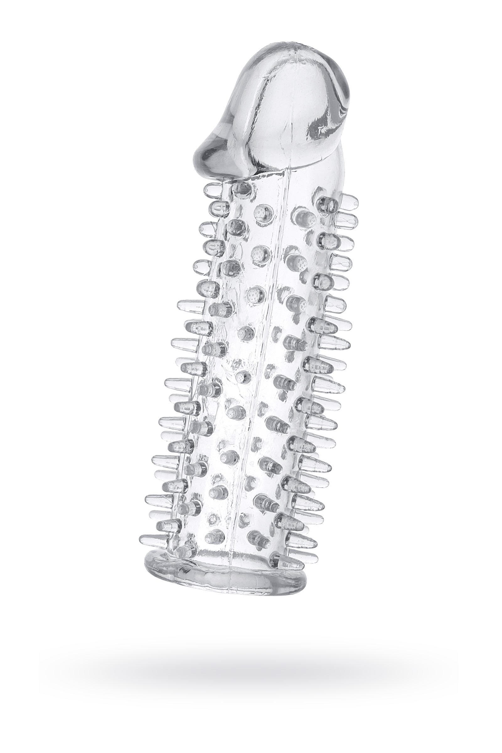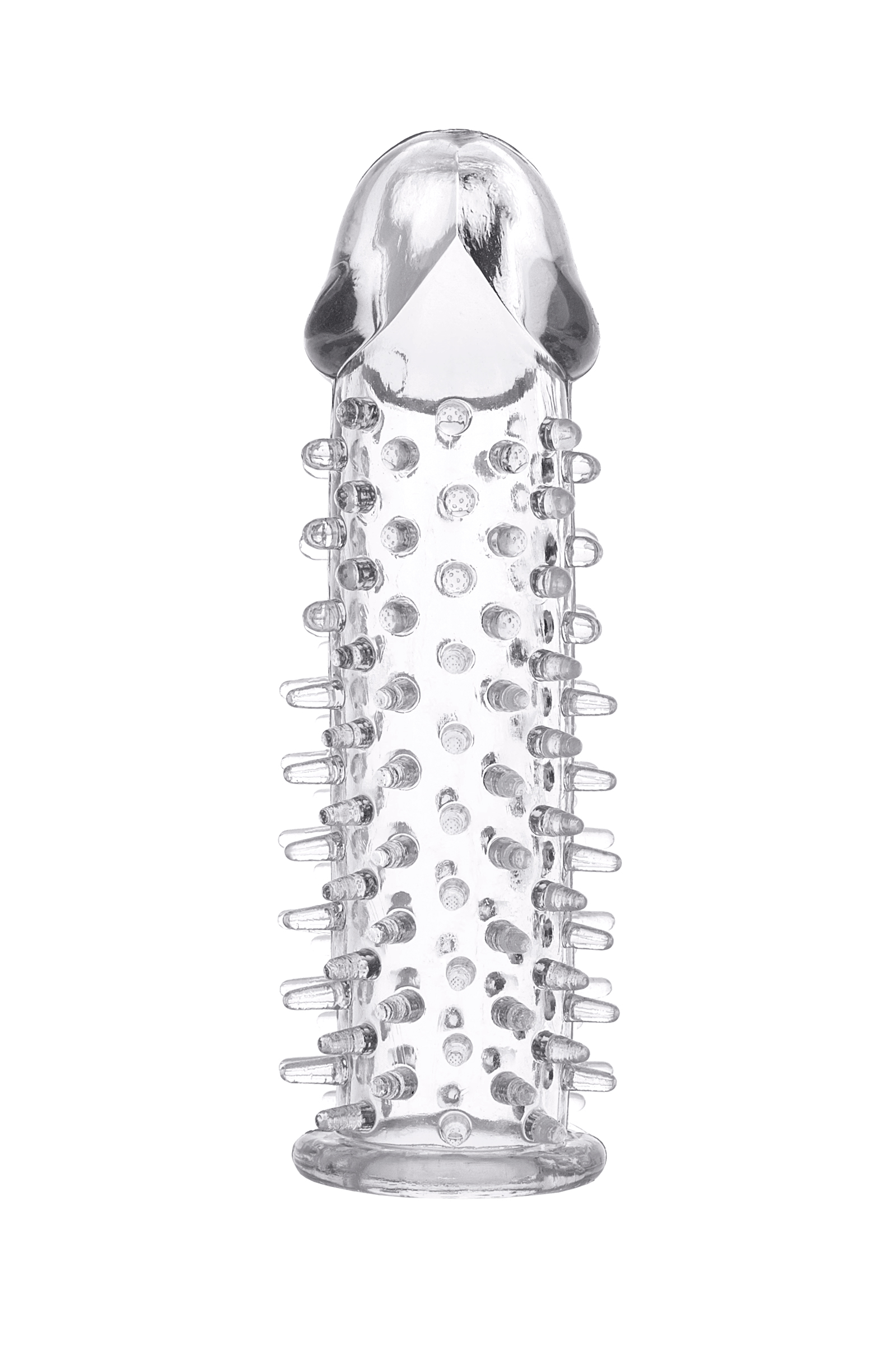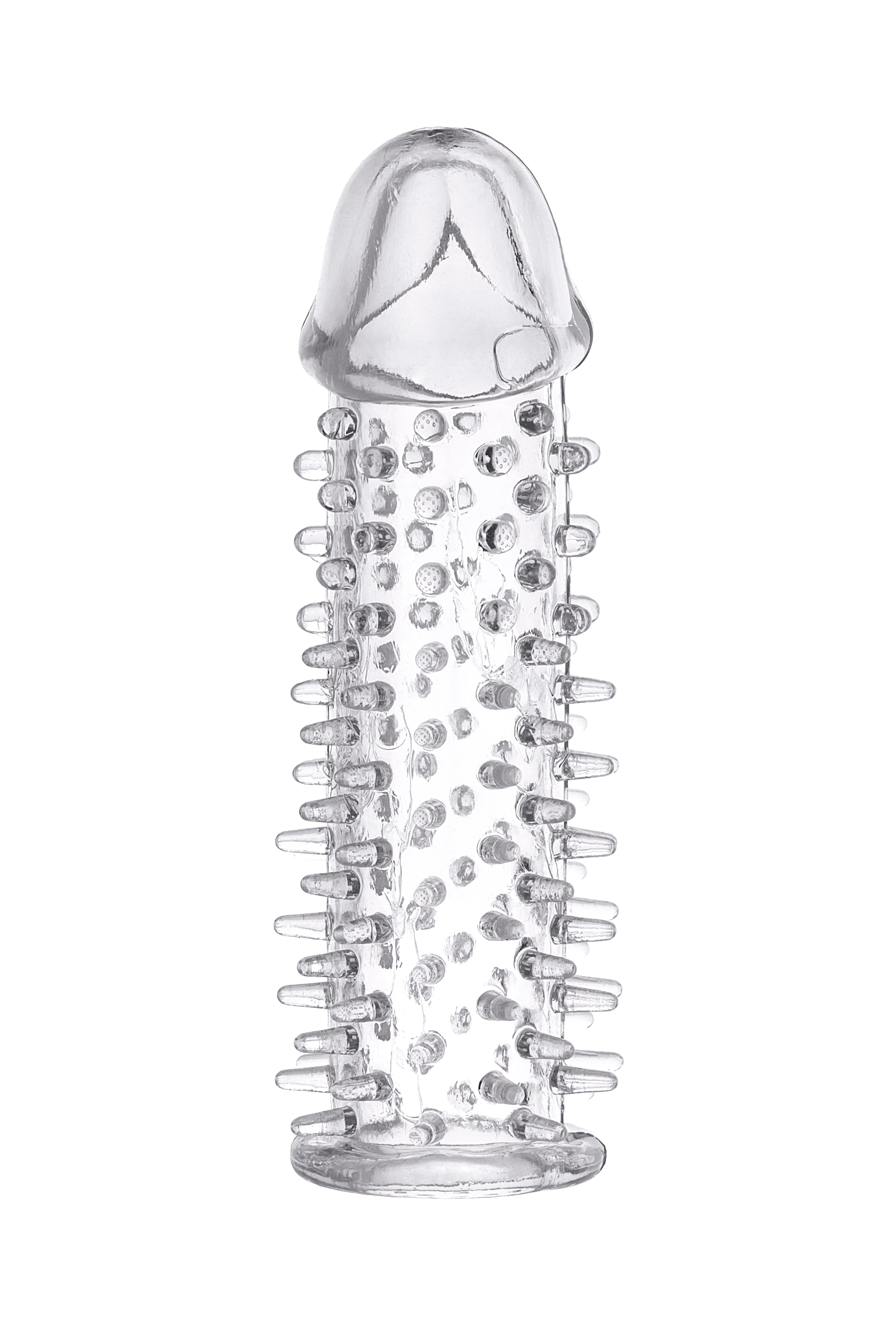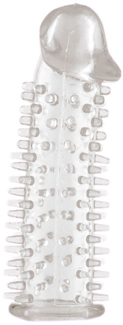Насадка гелевая прозрачная в форме пениса с закрытой головкой покрытая по всей длине мягкими шипиками для внутренней стимуляции влагалища , легко одевается используется со смазкой для лучшего скольжения. увеличивает размеры пениса . Длина 12,5 см, ширина/диаметр 3 см. Материал ПВХ