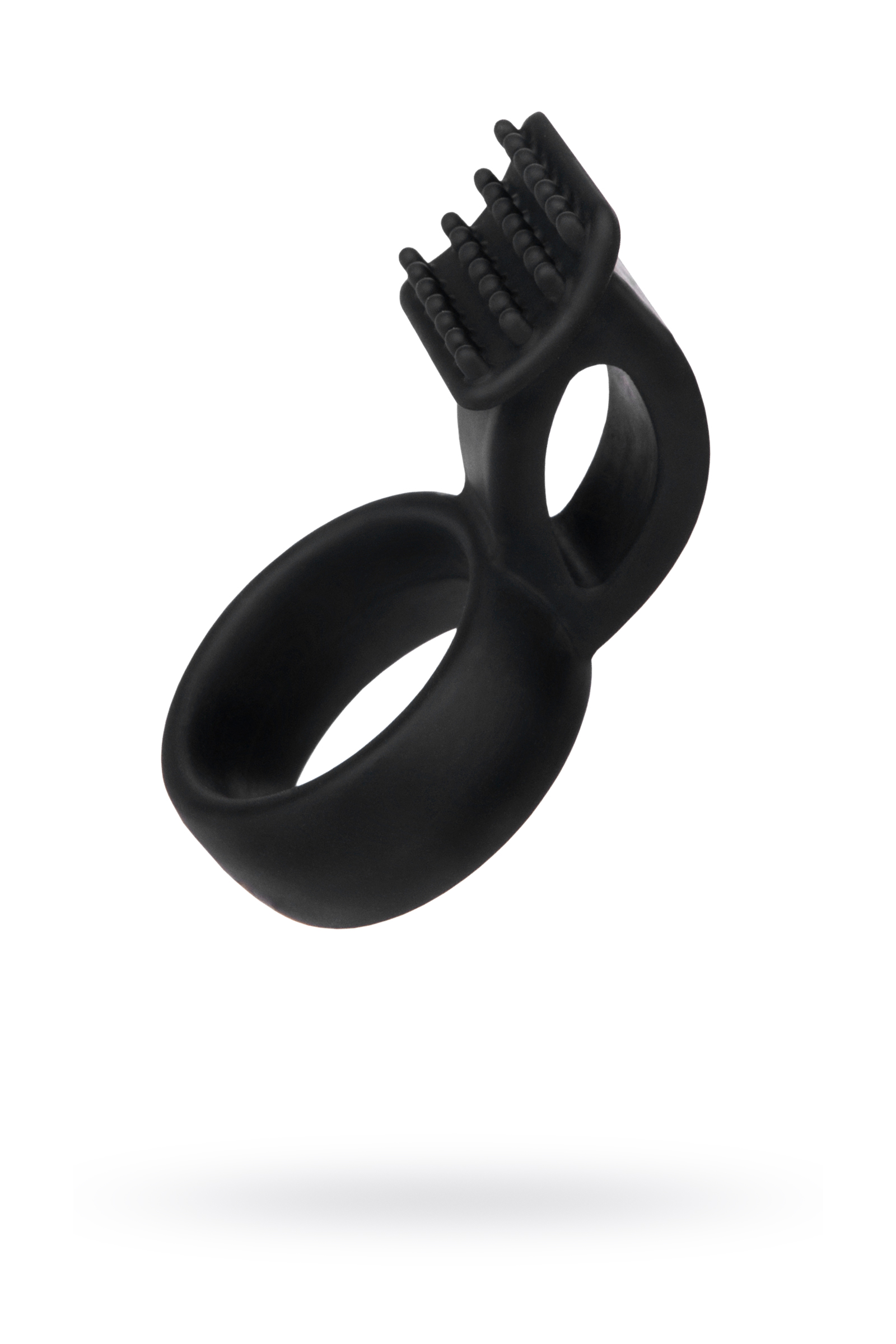 Силиконовая насадка. С кольцом для крепления и клиторальной стимуляцией. С орнаментом. Цвет Черный.